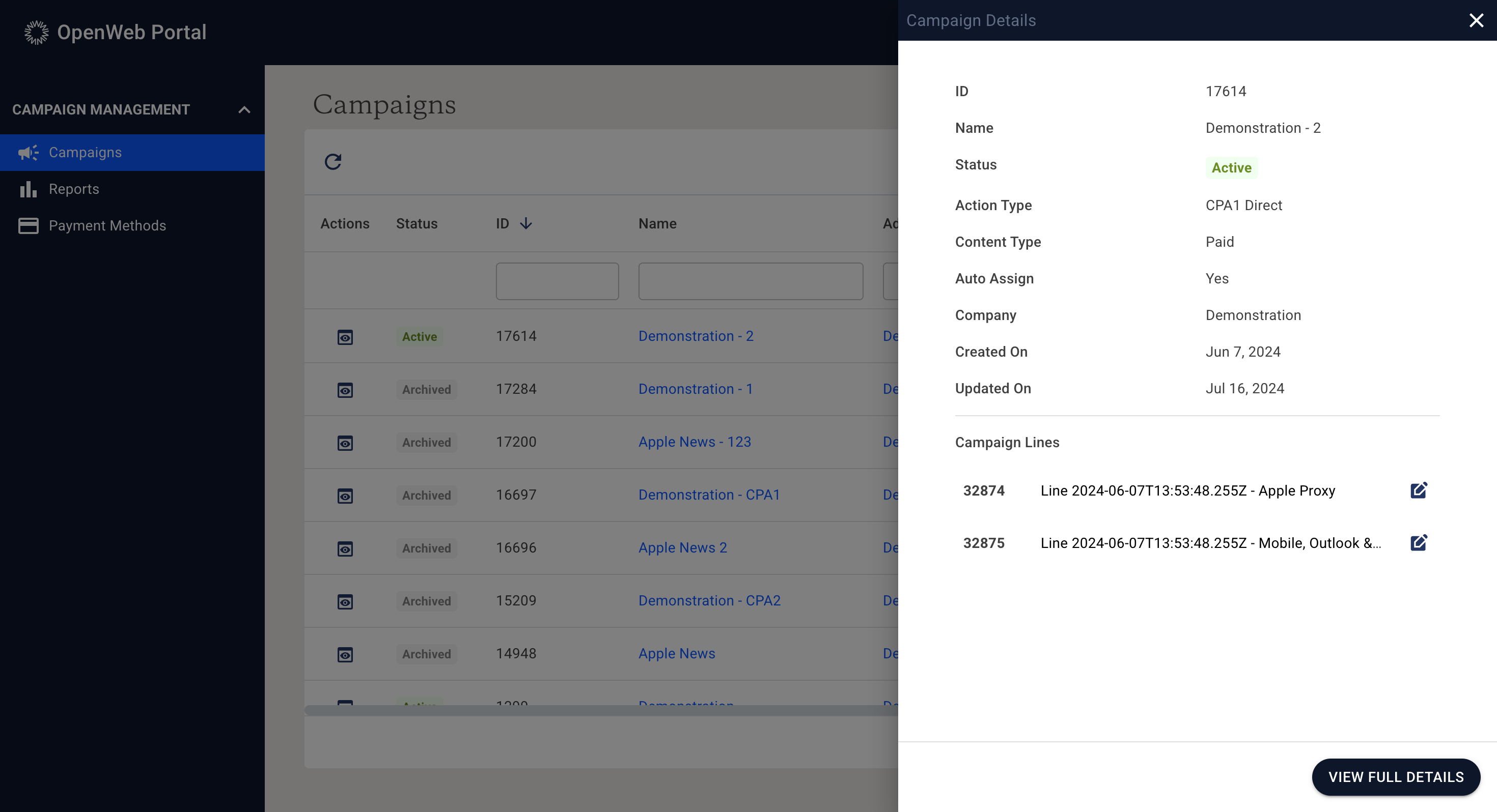 The Campaign List page provides advertisers with a centralized view of all campaigns they have access to. From this page, users can: